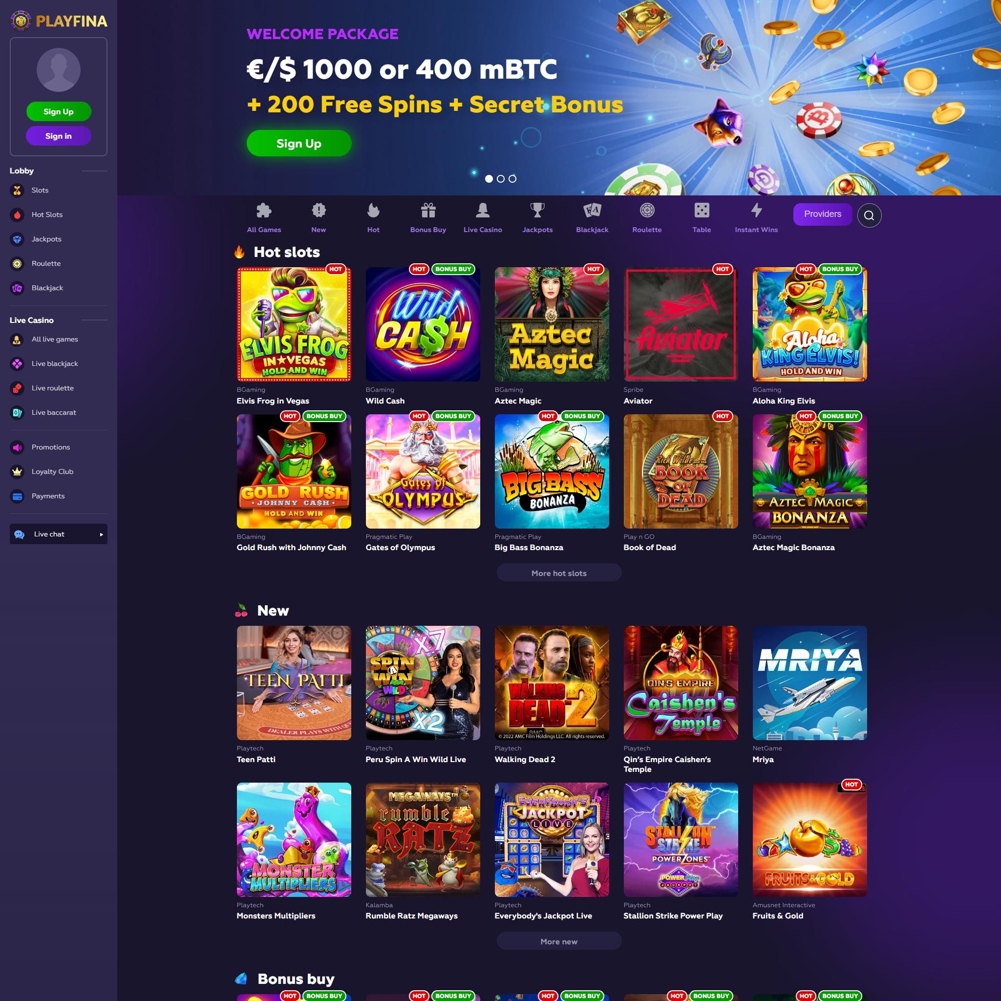 Playfina offers a wide range of game options to cater to different preferences and tastes. Whether you are a fan of slots, table games, live dealer games, or instant win games, Playfina has something for everyone.